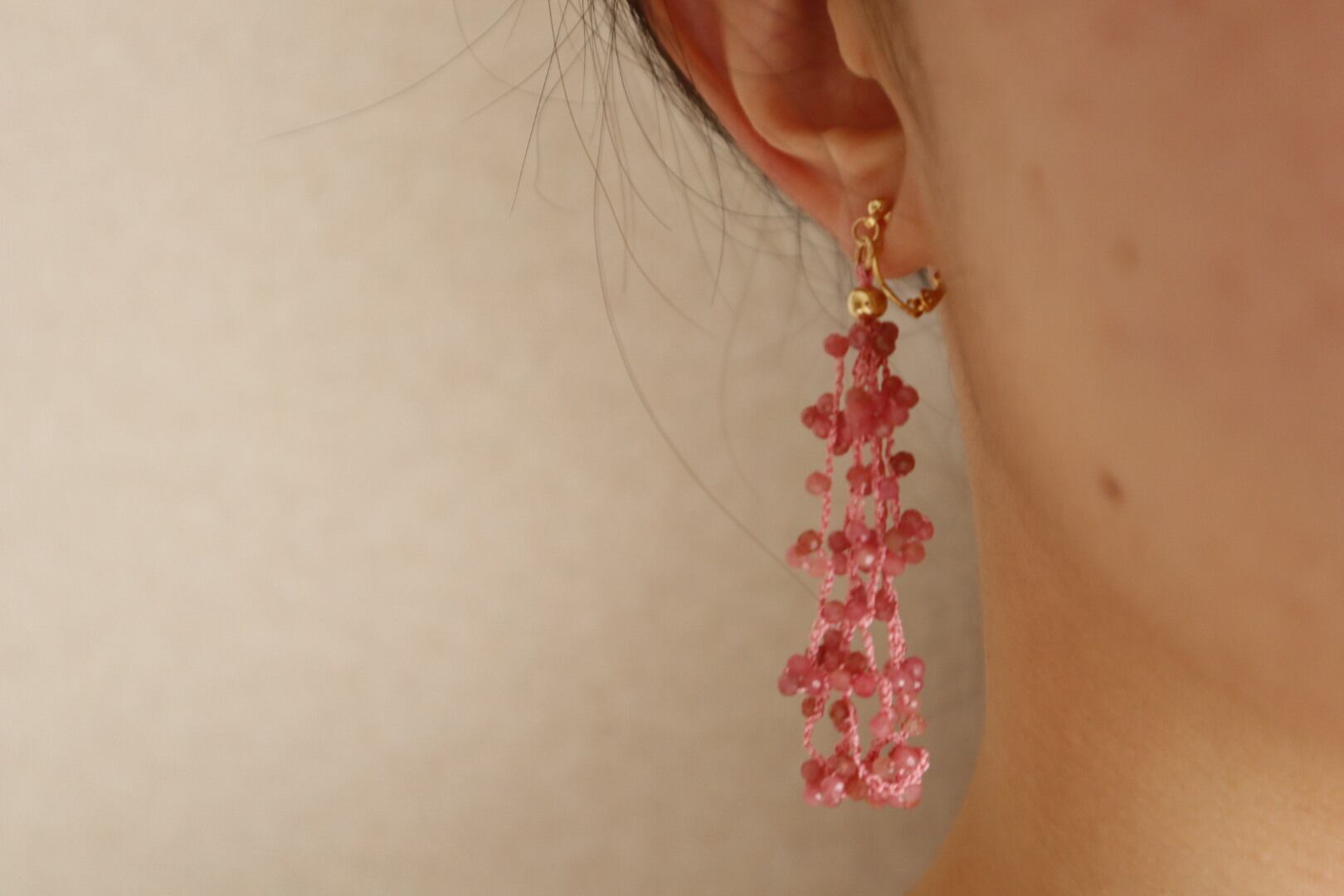▶天然石や淡水パールは形状や色に個体差があり、ひとつひとつ手作業で制作しているため、多少左右差がある場合がございますが、手作りの1点ものとしてご理解ください
